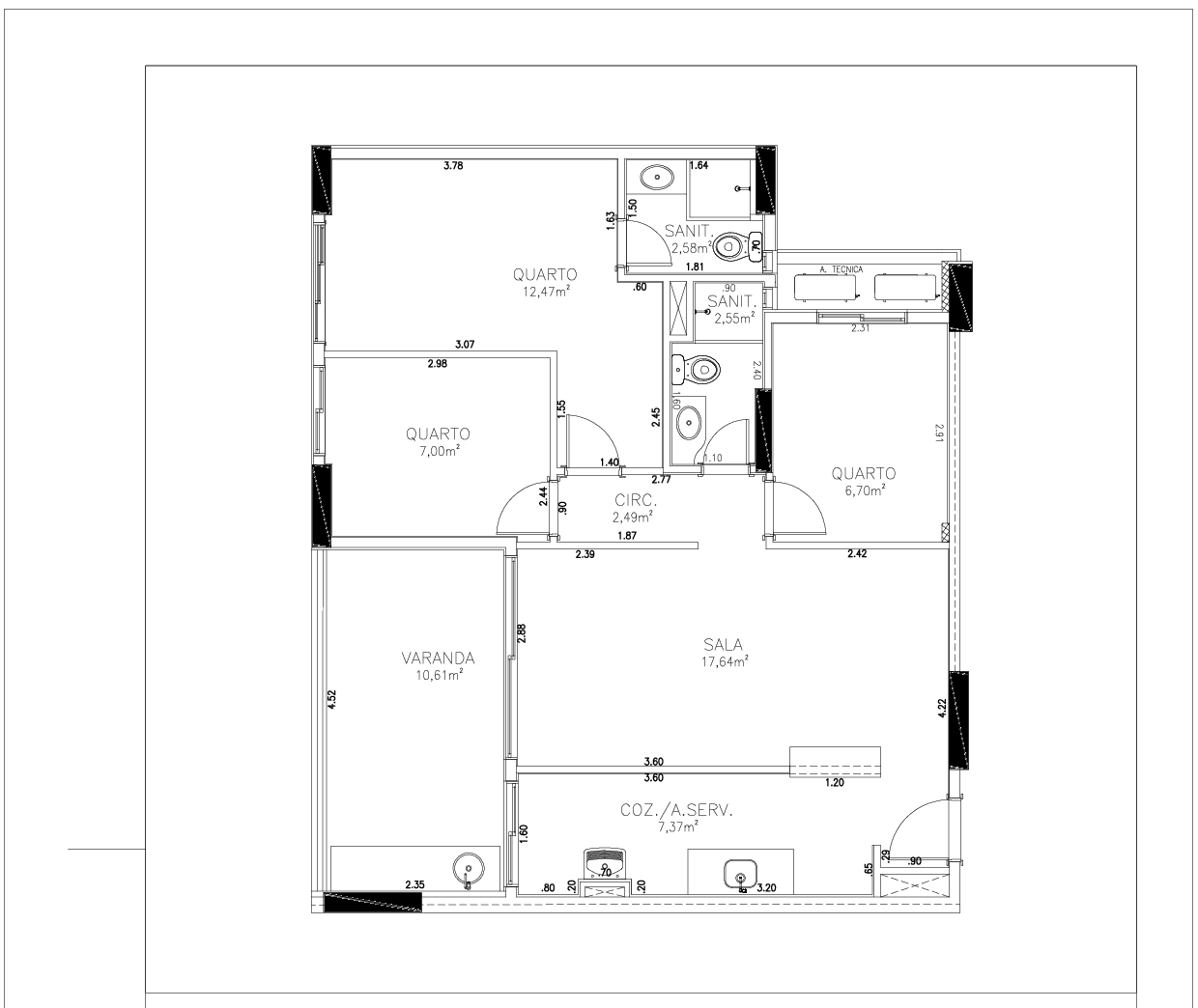 Com kit de acabamento da Gráfico Engenharia, com pisos em todos os ambientes, banheiros cozinha e varanda.