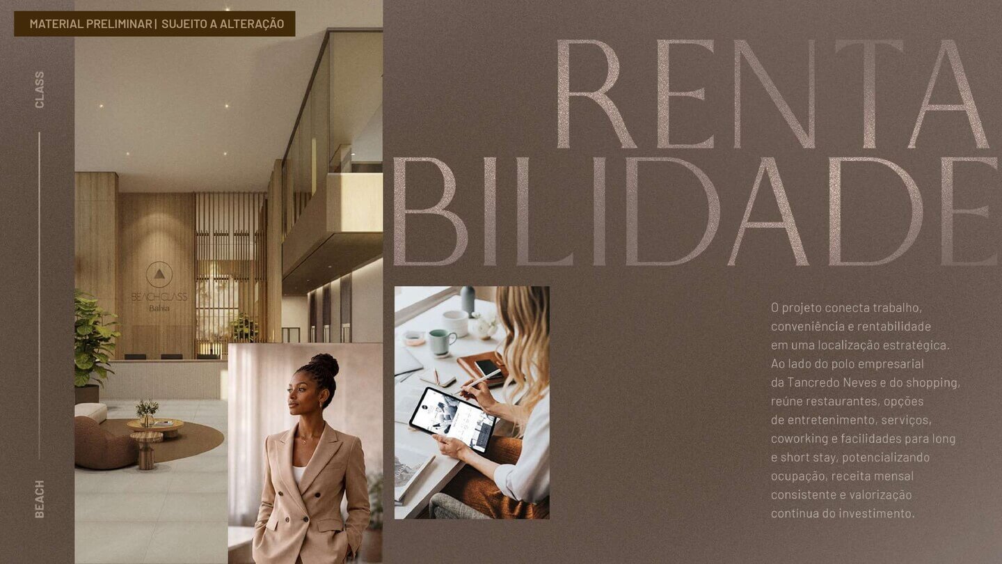 Se você busca um imóvel com localização estratégica, conceito inovador, alto potencial de valorização e integração total com a cidade, o Beach Class Bahia representa uma nova referência em viver e investir em Salvador.