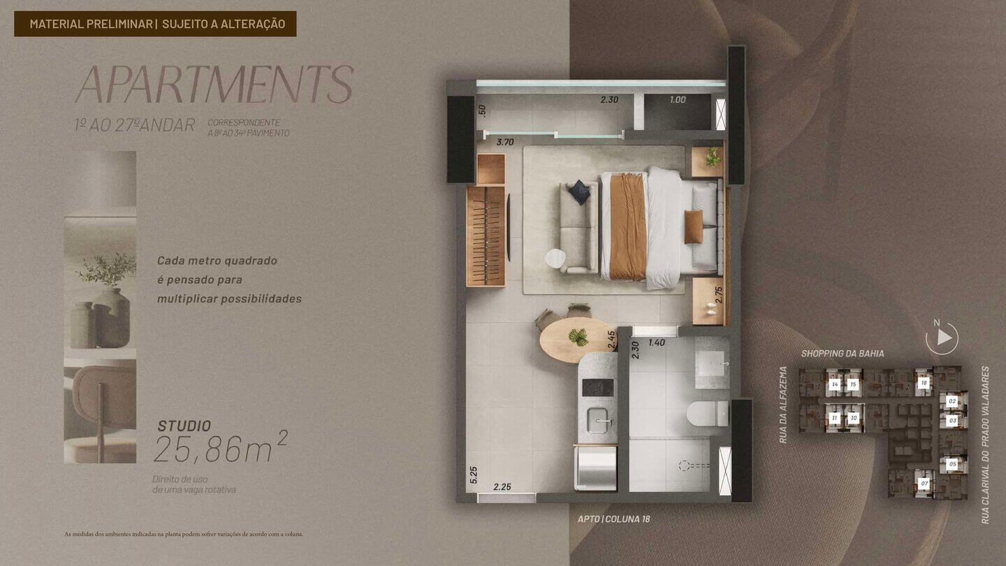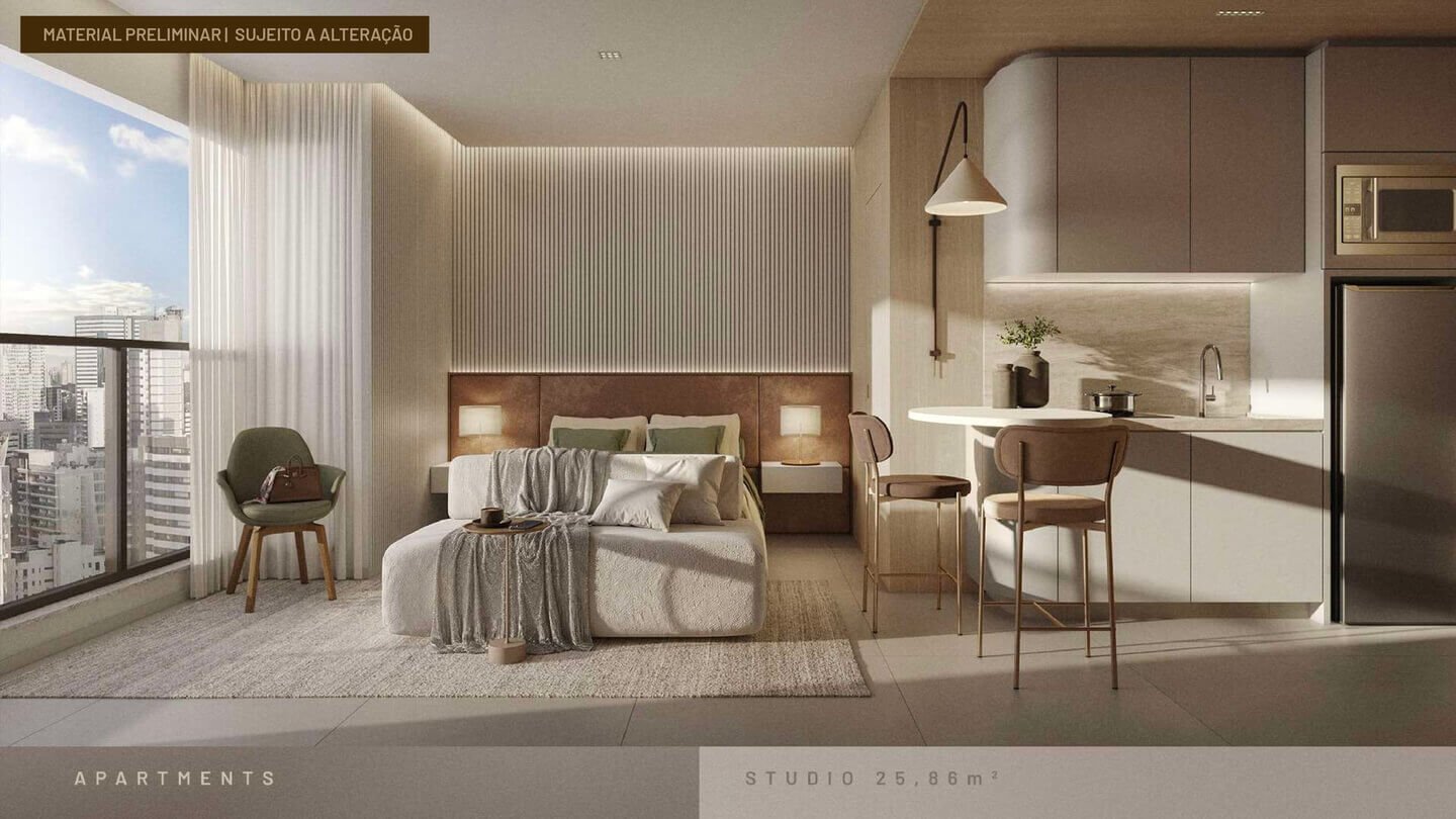 Studios e quarto e sala (19º ao 27º pavimento):