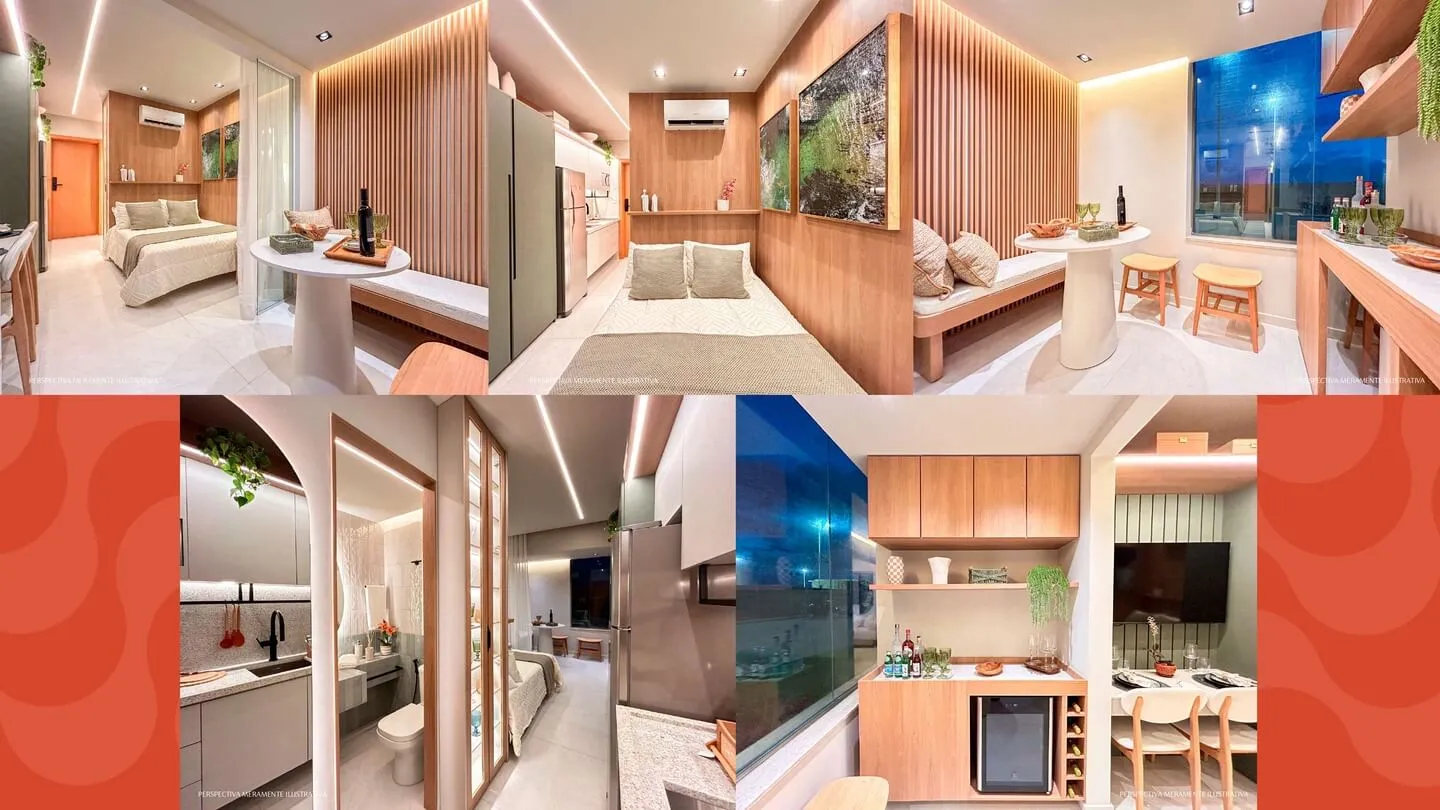 O empreendimento oferece unidades inteligentes com excelente aproveitamento de espaços, todas com varanda e projeto contemporâneo: