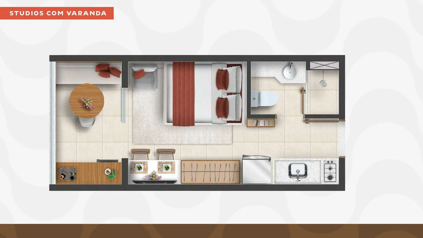 • Studios com varanda (20 e 21 m²)