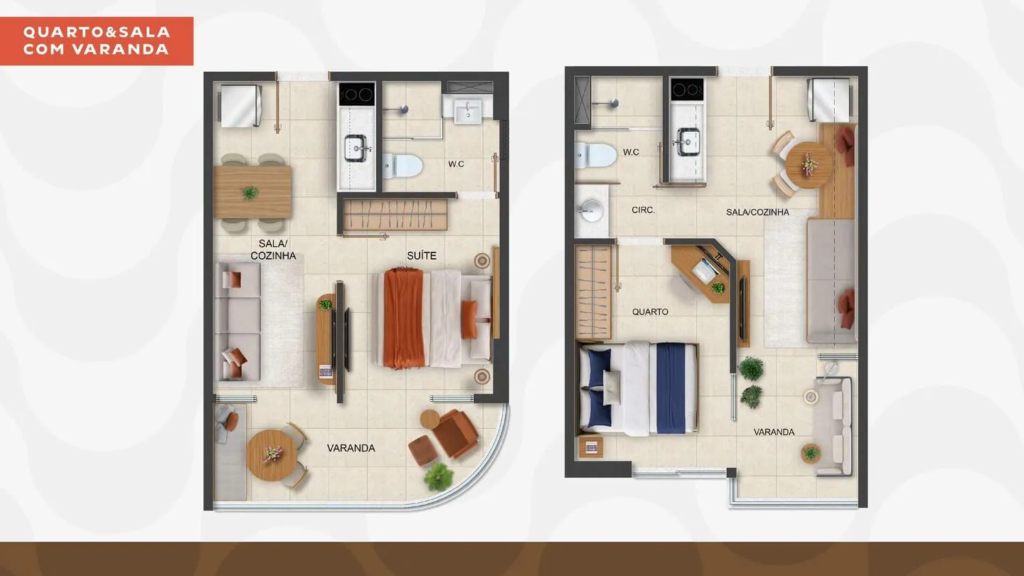 • Quarto & Sala com varanda (28 e 31 m²)