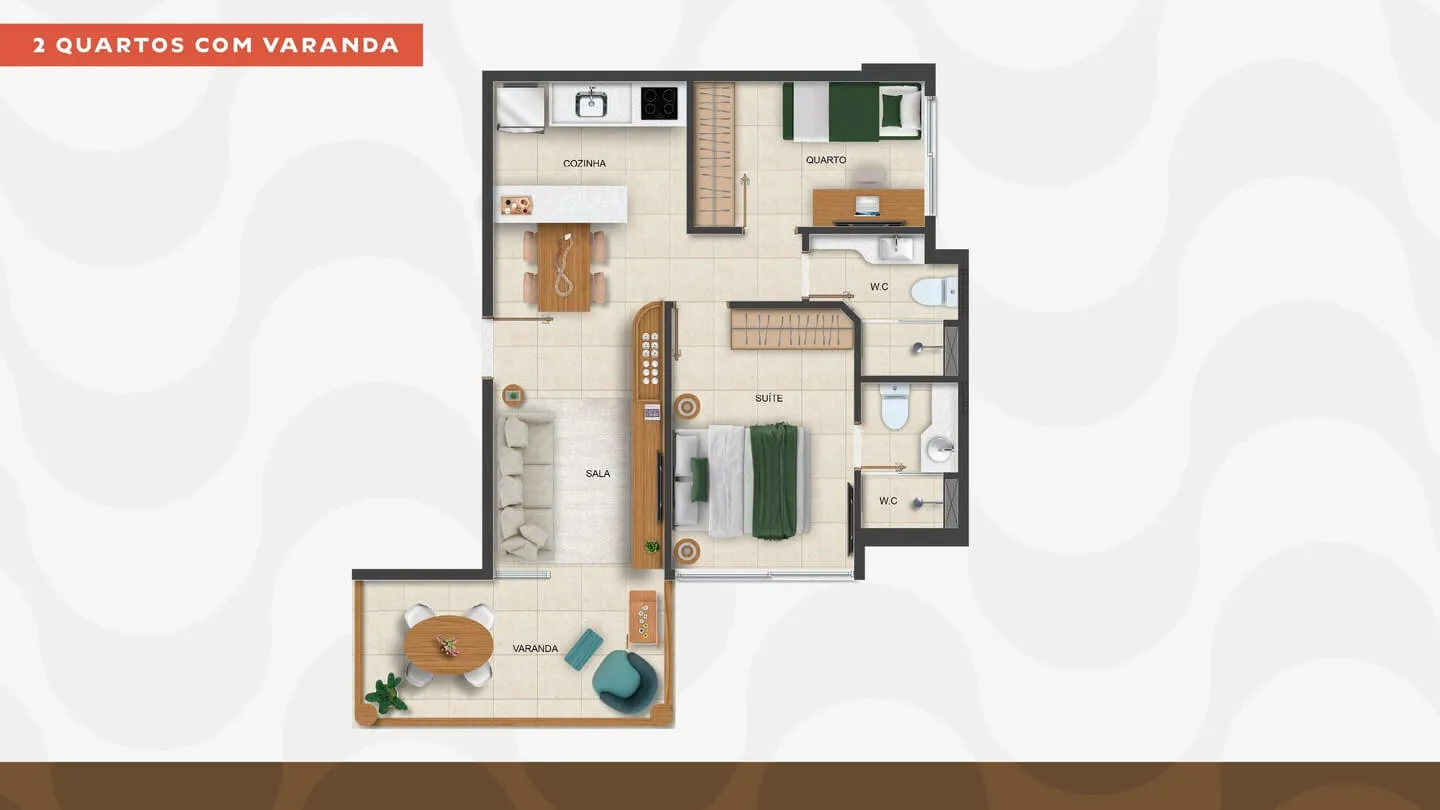 • 2 Quartos com varanda (52,15 m²)