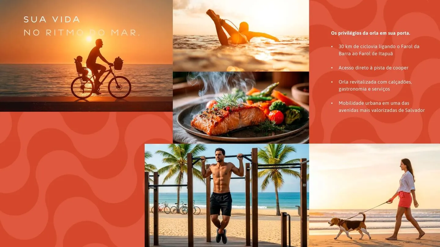 O Smart Copacabana nasce em frente à nova Orla do Corsário, trazendo o charme do Rio integrado à alma baiana em um projeto contemporâneo, funcional e inspirado no estilo de vida da orla. Um lançamento padrão internacional que une localização privilegiada, arquitetura moderna e áreas de lazer completas, criando um novo jeito de viver ao lado do mar.